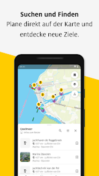 簡単なナビゲーションのために、アプリは衛星ビューを含むすべての関連する航海マーカーを備えた明確な地図を提供します。マリーナ、錨地、およびブイフィールドは地図上で簡単に識別できます。